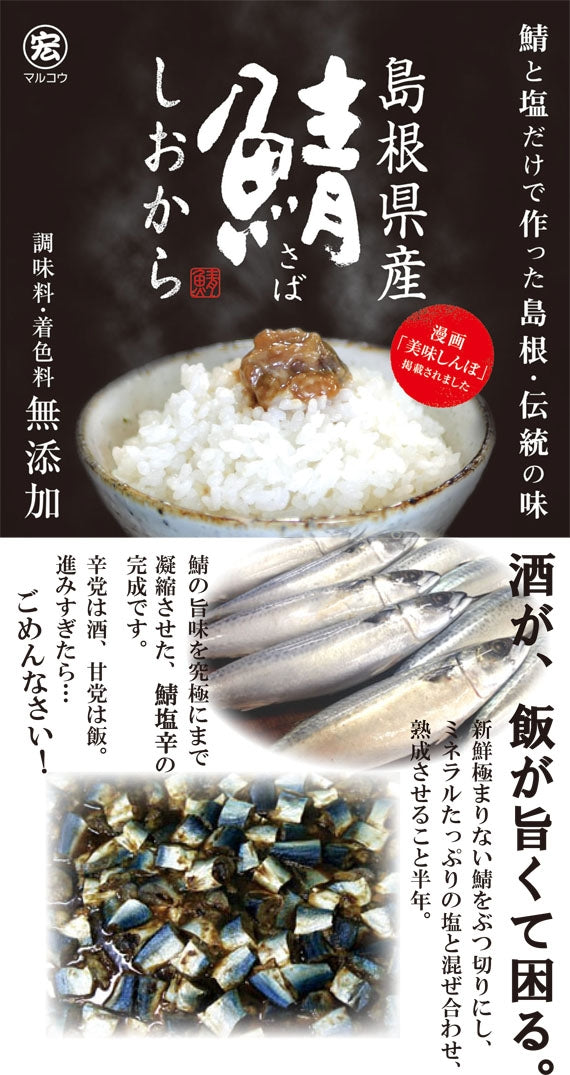 小学館の人気漫画『美味しんぼ』109巻(日本全県味巡り 島根編)で当社の『鯖しおから』が紹介されました。商品詳細は下↓のバナーをクリック!