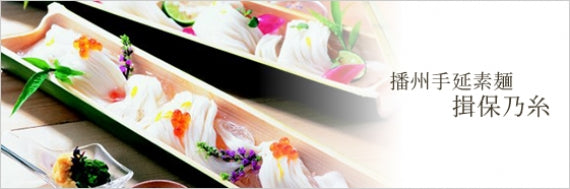播州手延素麺 揖保乃糸は良質の小麦粉・揖保川を中心とした播磨地方の清流と赤穂の塩を原料とし、熟練した職人が丹精込めて作り上げた言わずと知れた播磨の名産品。