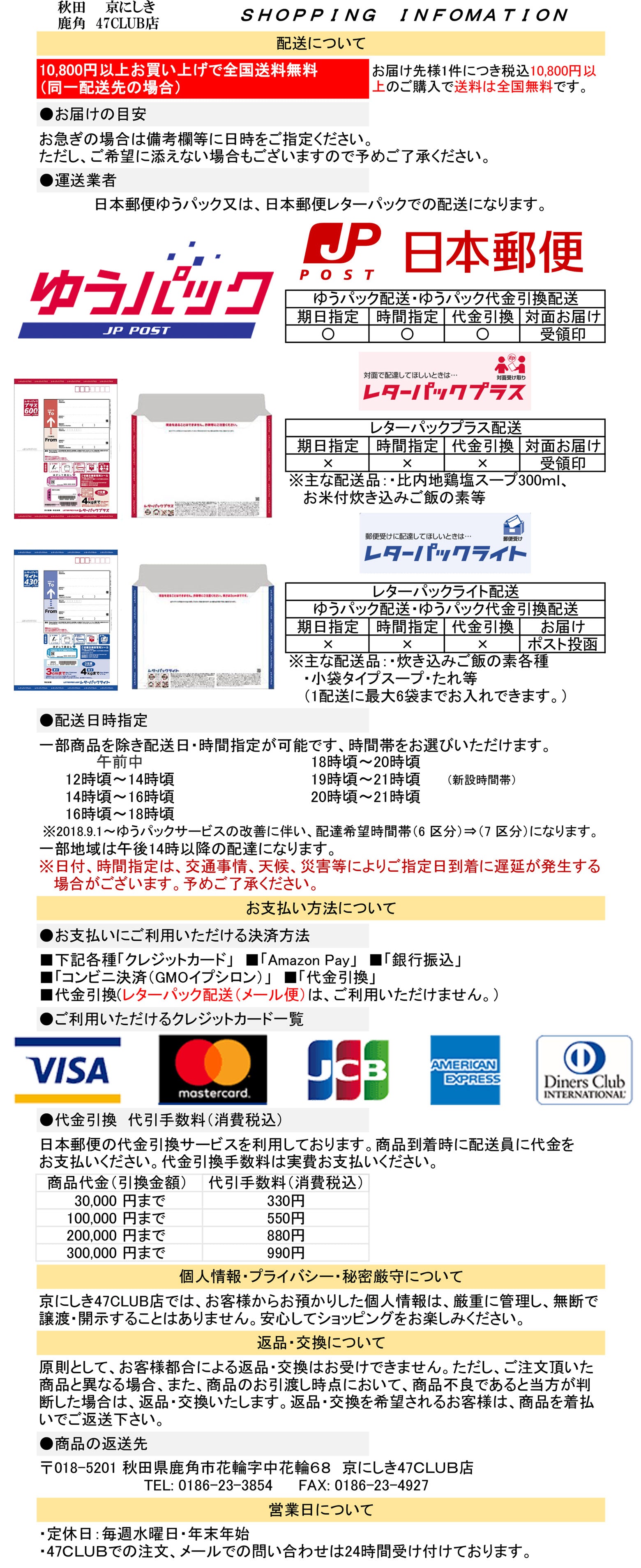・日本郵便(ゆうパック)代金引換をご利用の場合は、お買い上げ金額が30万円までとなります。