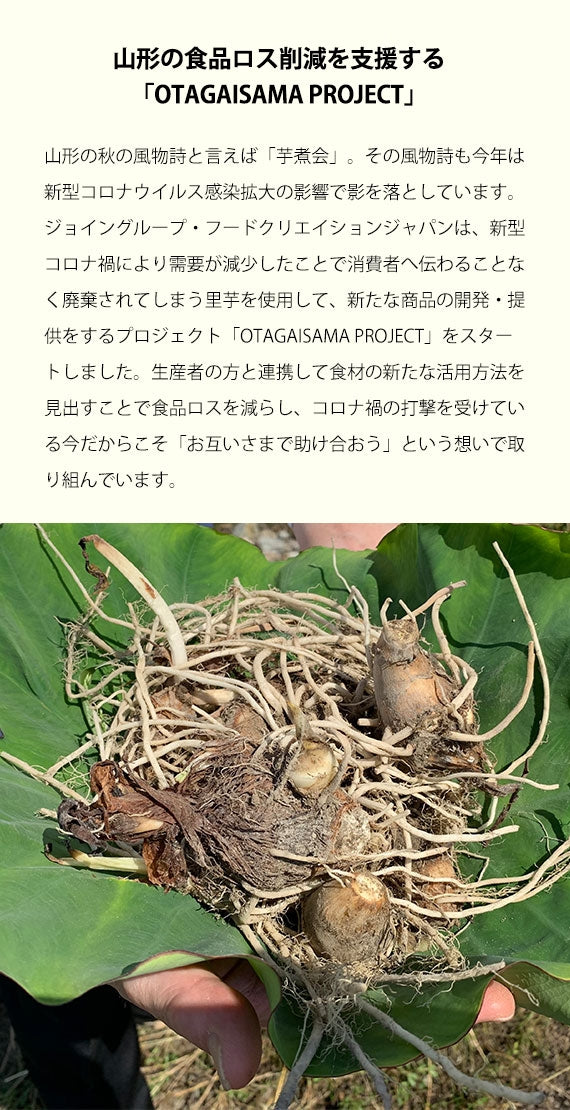 新型コロナ禍により需要が減少したことで廃棄されてしまう里芋を贅沢に使用した、しっとり濃厚なチーズケーキをひとつひとつ手づくりで製造・販売しております。