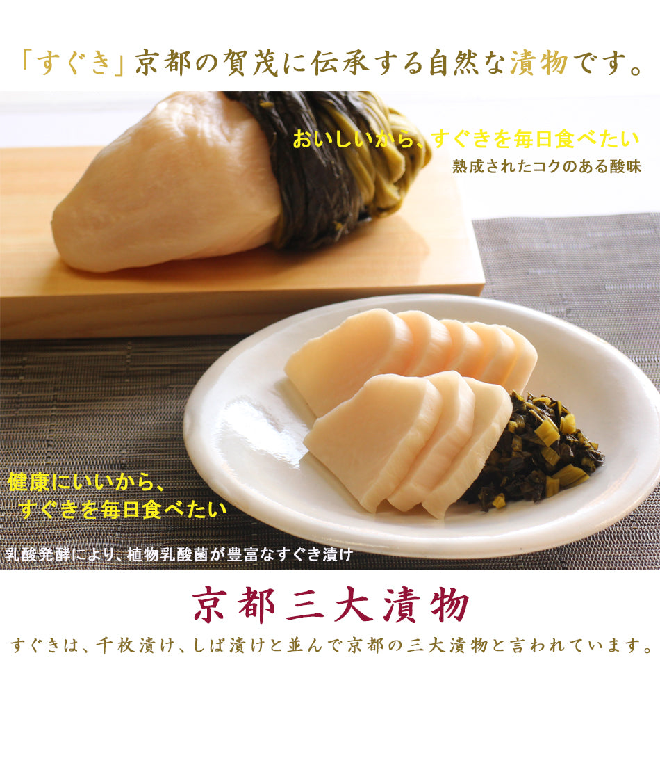 すぐきは、千枚漬、しば漬と並んで、京都三大漬物と呼ばれています。