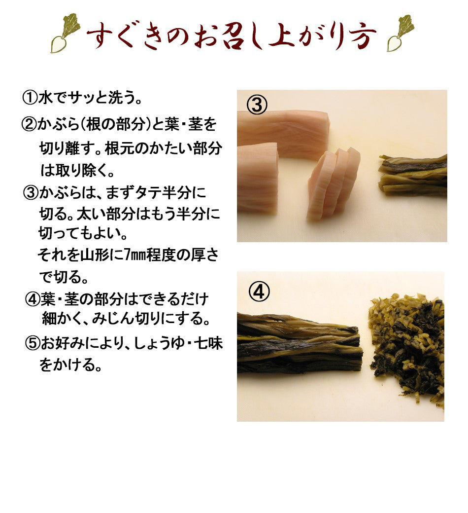 しかし私どもは丸のままのすぐきを販売しております。すぐき漬け本来のそのままのお味をお楽しみいただけます。