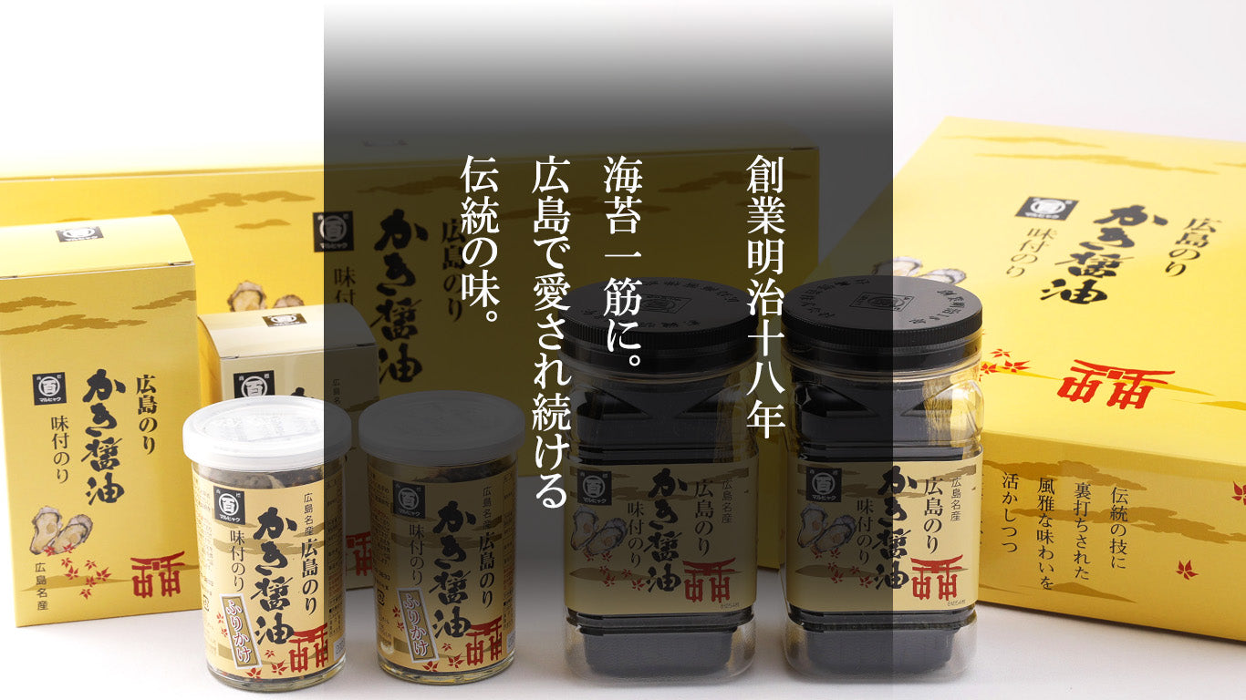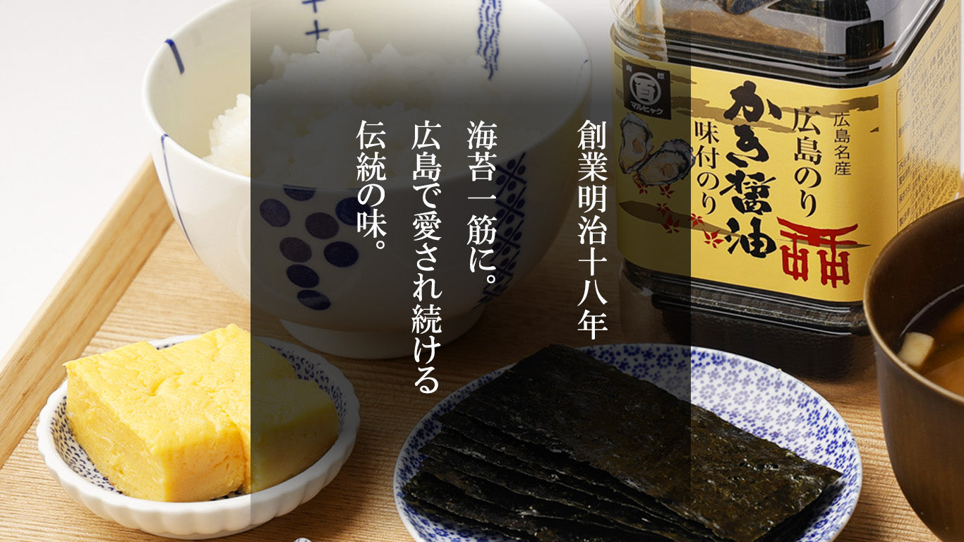 かき醤油味付のりでおなじみの「マルヒャク広島海苔」です。