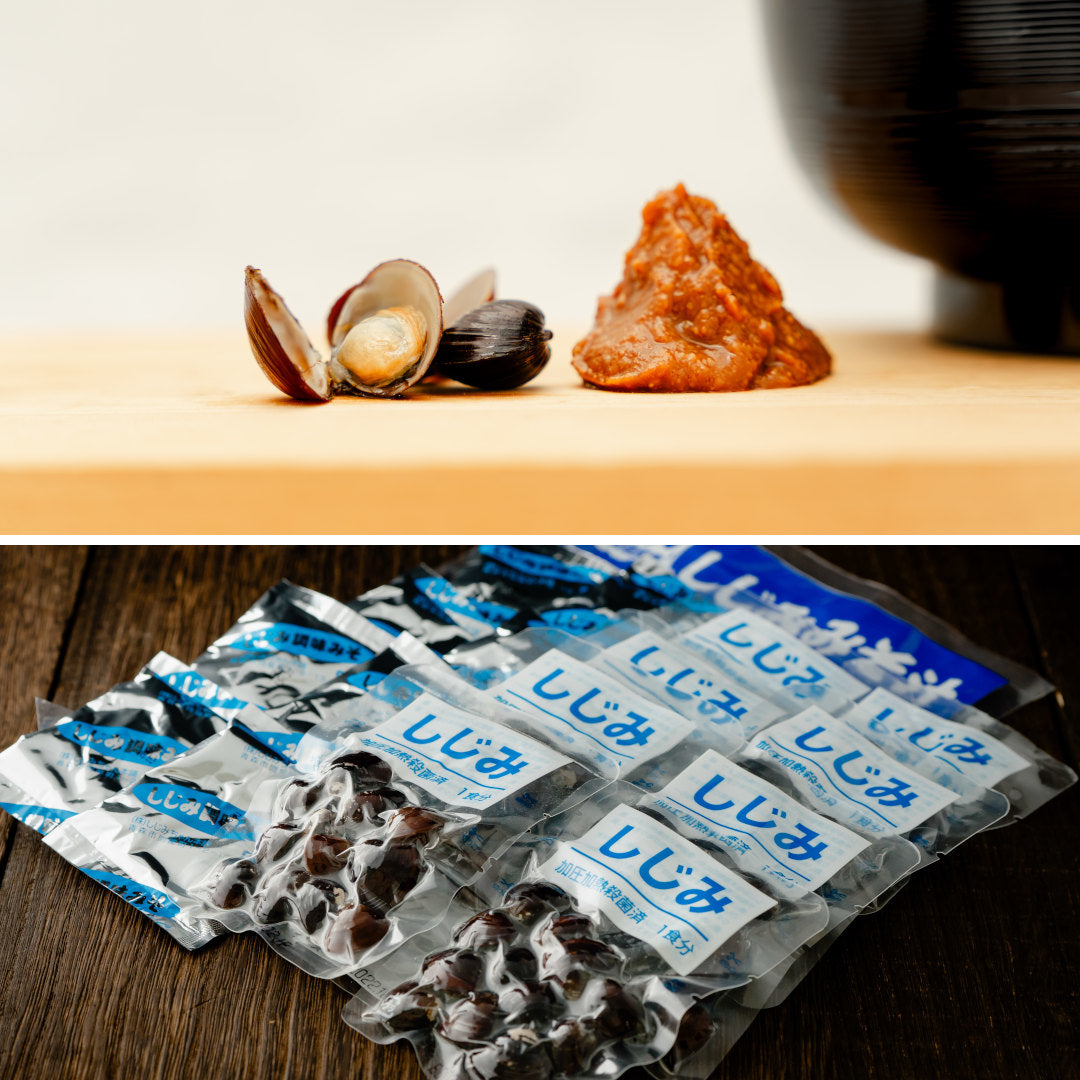 具:殻付きしじみ(青森県産) 調味みそ:米みそ(大豆を含む)、貝エキス、かつおエキス、昆布エキス、しじみエキスパウダー/調味料(アミノ酸等)、酒精 ※みその大豆は遺伝子組換えの混入を防ぐため分別管理しています。