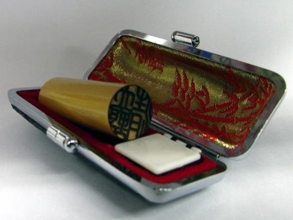 開運印鑑とはいったいどんなものなのでしょうか?まず印材。自然の生気ある材質で、象牙、水牛、つげの3つから選びます。次に印画。丸型が吉。ご夫婦の場合は夫が大きく妻が小さくするのが原則ですが、大事業や環境などによって同寸も可です。印の大きさのベストは男子実印・銀行印の場合、直径15mm丸、認印は12mm丸ないし11mm丸。女子実印・銀行印は直径13.5mm丸。認印は11mm丸がよいでしょう。字体は印章文字として発達した八方てん書を用います。このほか姓名、生年月日との関係なども合わせて、おつくりいたします。