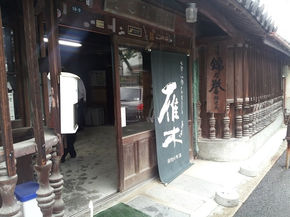 雁木の由来・・・私どもの蔵は創業時より錦川の河畔にあります。「雁木」とは船着場の階段のある桟橋のことをいい、かつて、われわれが造る酒の原料米は錦川の上流から下ってくる船で「雁木」から水揚げされ、酒という“いのち”を生み続けてきました。いわば「雁木」は八百新酒造にとっての原点であり、そこを遊び場にして育ったわれわれにとっての原風景でもあります。(蔵元談)