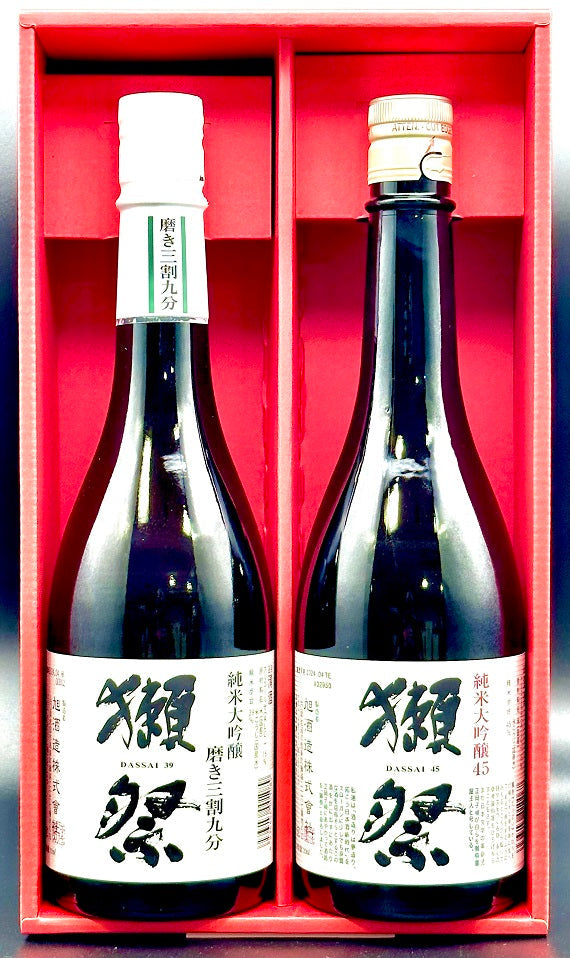 獺祭 純米大吟醸磨き三割九分(720m)¥2750×1本と獺祭純米大吟醸45(720ml)¥2183×1本。計2本セット。化粧箱¥500