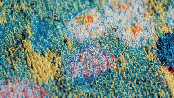 5色の糸でタオルを織り、ドットの代わりに、細かいパイルの色を