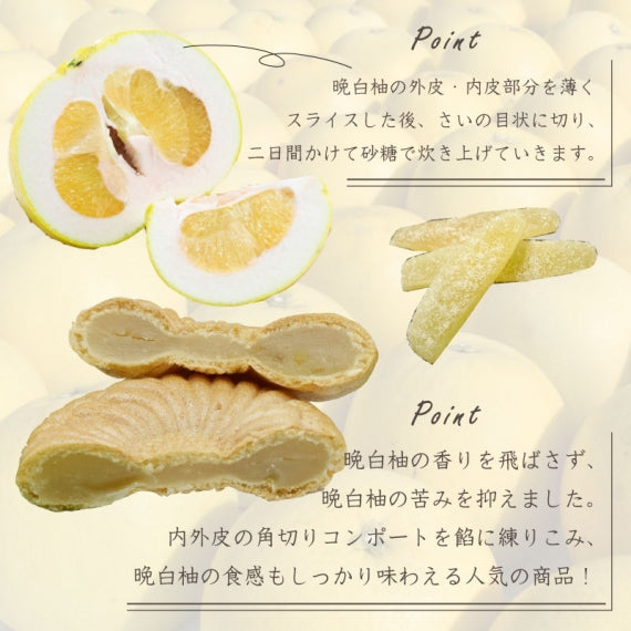 手亡豆、砂糖(グラニュー糖)、粉末マルチトール、水飴、最中皮(餅米)、晩白柚皮蜜漬け、寒天