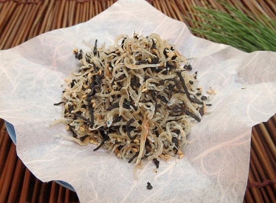 上乾のちりめんとしそ風味のひじきを混ぜ合わせた商品です。爽やかなしそ風味のひじきとちりめんの旨味が相性バツグン!