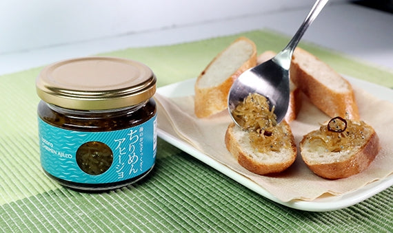 オリーブオイルの豊かな香りと、塩分控えめで体にも優しいちりめんの味がマッチしています。バゲットや野菜にかけて食べるのもおいしいですが、刺し身にかけて食べるのもおすすめです。