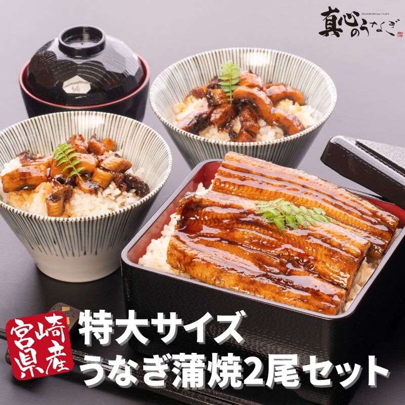 特大うなぎ蒲焼(181~215g)×2, 添付タレ(山椒付)×2, お吸い物×2