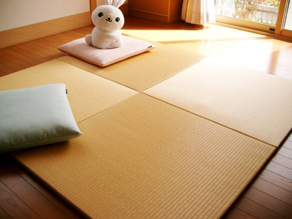 「畳は手入れが大変そう」「和室を設けたくても部屋数に限りがあり作れなかった」など、和の空間から離れている方々に、半畳サイズの畳を提案しています。この畳は、フローリングの上に好きなように敷き、それぞれの家庭でオリジナルの和の空間を楽しんでもらえます。  畳は水ぶきできるので、こぼし跡が残りません。日が当たる場所に敷いても変色しにくく、湿気に強い素材を用いているのでダニ、カビの防止効果があります。滑りにくいため、お子さまやお年寄りも安心して過ごせるはずです。  子ども部屋や客間などフローリングに、カーペット感覚で畳を敷いてみてはいかがでしょう。半畳サイズは持ち運びも便利。色柄もベーシックなものをはじめピンク、グレー、ブルーバイオレットなど多数そろえています。色の組み合わせを楽しみ、おしゃれな空間を自分らしく演出しても良いと思います。