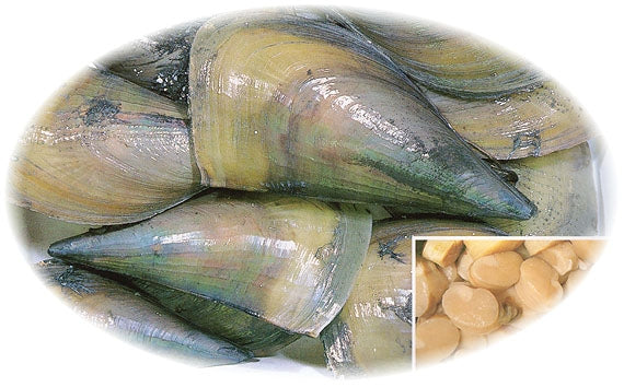 たいらぎ貝は三角形の形をした二枚貝です。主に貝柱と外套膜(ヒモ、ビラ)として出荷されています。貝柱はとても美味で、刺身、バター焼き、寿司だね、粕漬などで食べます。