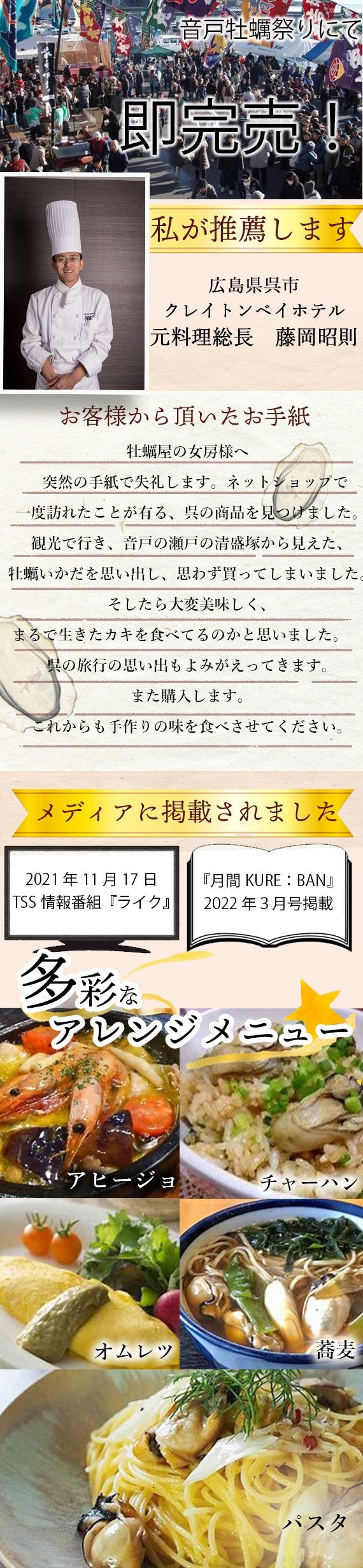 広島県呉市音戸町の牡蠣祭りで、一番人気! 販売すると即完売!
