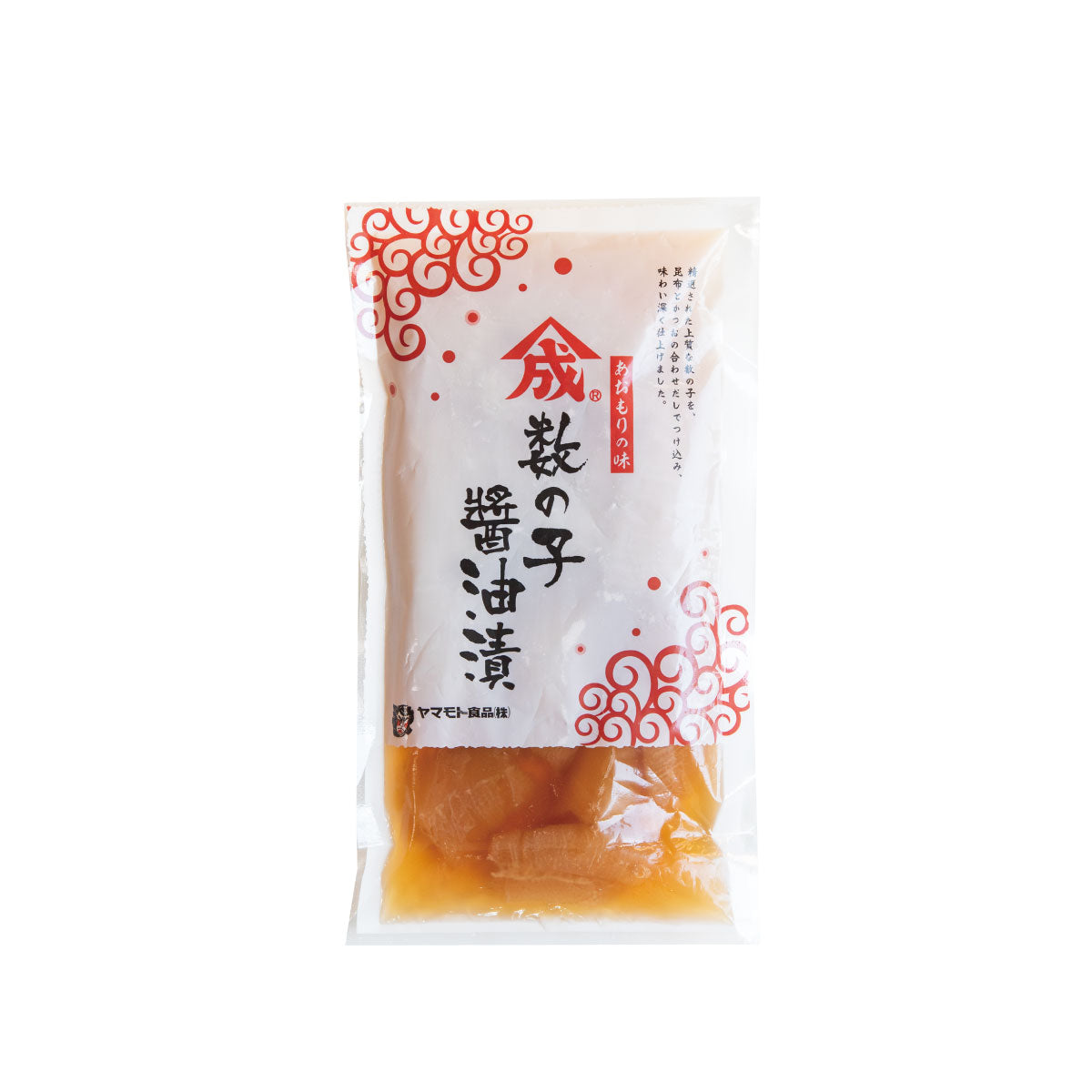 数の子(オランダ)、しょうゆ、還元水飴、こんぶエキス、カニエキス、かつお節調味エキス、みりん、食塩/ソルビット、調味料(アミノ酸等)、酒精、酸味料、リン酸塩(Na)、(一部に小麦・かに・大豆・ゼラチンを含む)