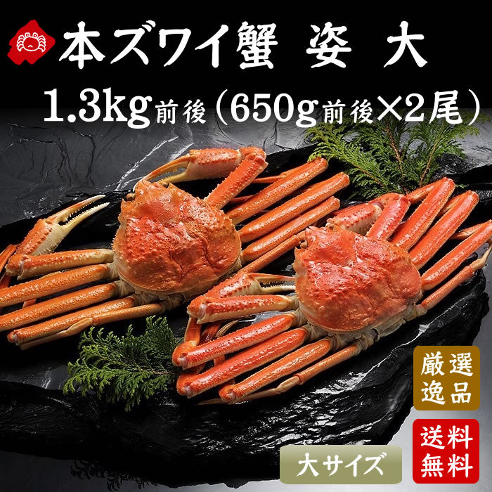 本ずわい蟹姿ボイル:1.3kg前後(650g前後×2尾)