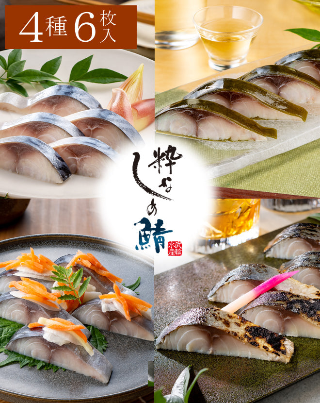 粋なしめ鯖4種6枚をお得なセットにしてお届け致します!