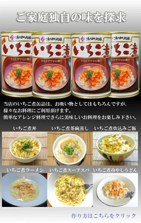 魚介類[蒸ウニ(ウニ(チリ産))、ロコ貝、アワビ]、帆立貝エキス(ホタテエキス、還元水飴、食塩)、鰹節エキス(鰹節抽出液、蛋白加水分解物、食塩、鰹エキス)、野菜(ネギ、シソの葉)、食塩/調味料(アミノ酸等)、(一部に小麦・あわびを含む) 本製品の製造ラインでは、かに、えび、卵、乳を使用した製品も製造しています。
