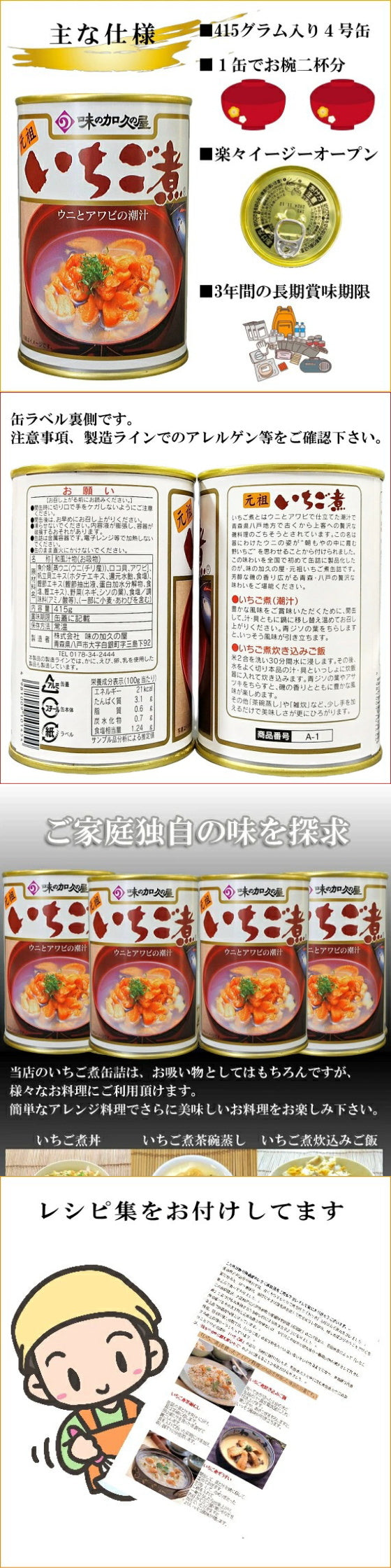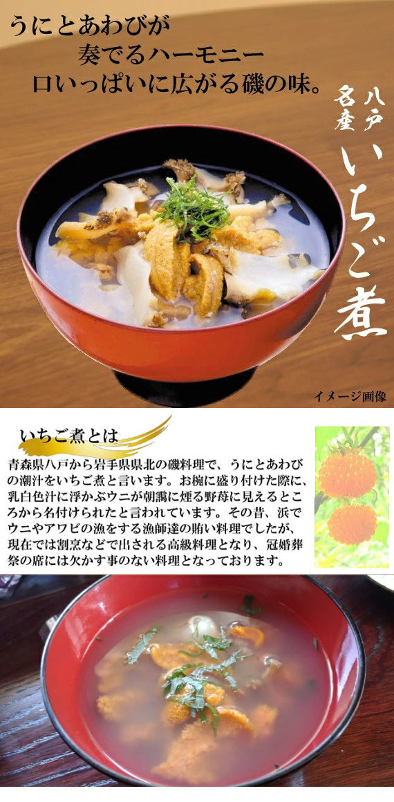 魚介類[蒸ウニ(ウニ(チリ産))、ロコ貝、アワビ]、帆立貝エキス(ホタテエキス、還元水飴、食塩)、鰹節エキス(鰹節抽出液、蛋白加水分解物、食塩、鰹エキス)、野菜(ネギ、シソの葉)、食塩/調味料(アミノ酸等)、(一部に小麦・あわびを含む) 本製品の製造ラインでは、かに、えび、卵、乳を使用した製品も製造しています。