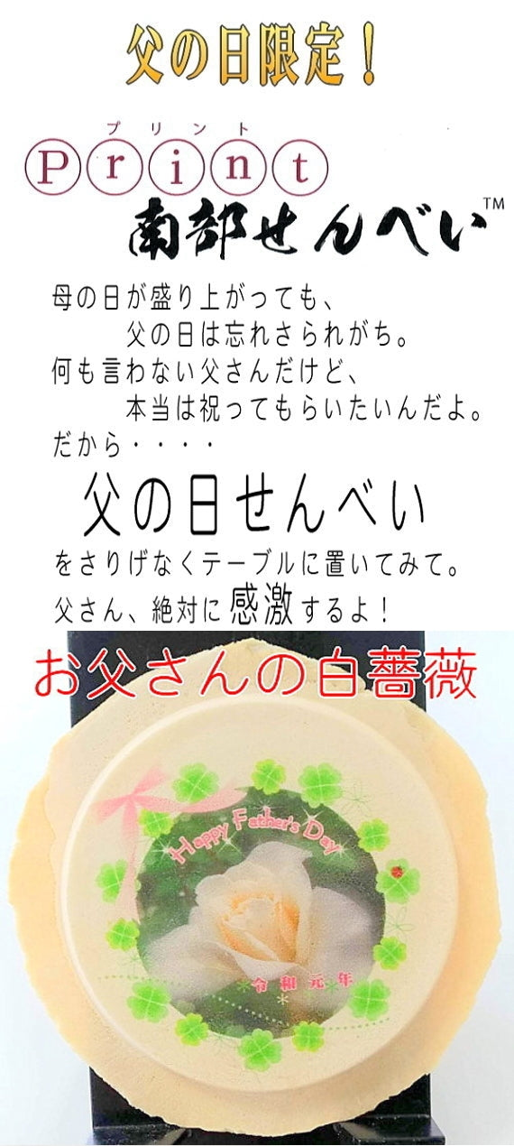 白せんべい、白胡麻せんべい。白豆せんべいにプリントしています。