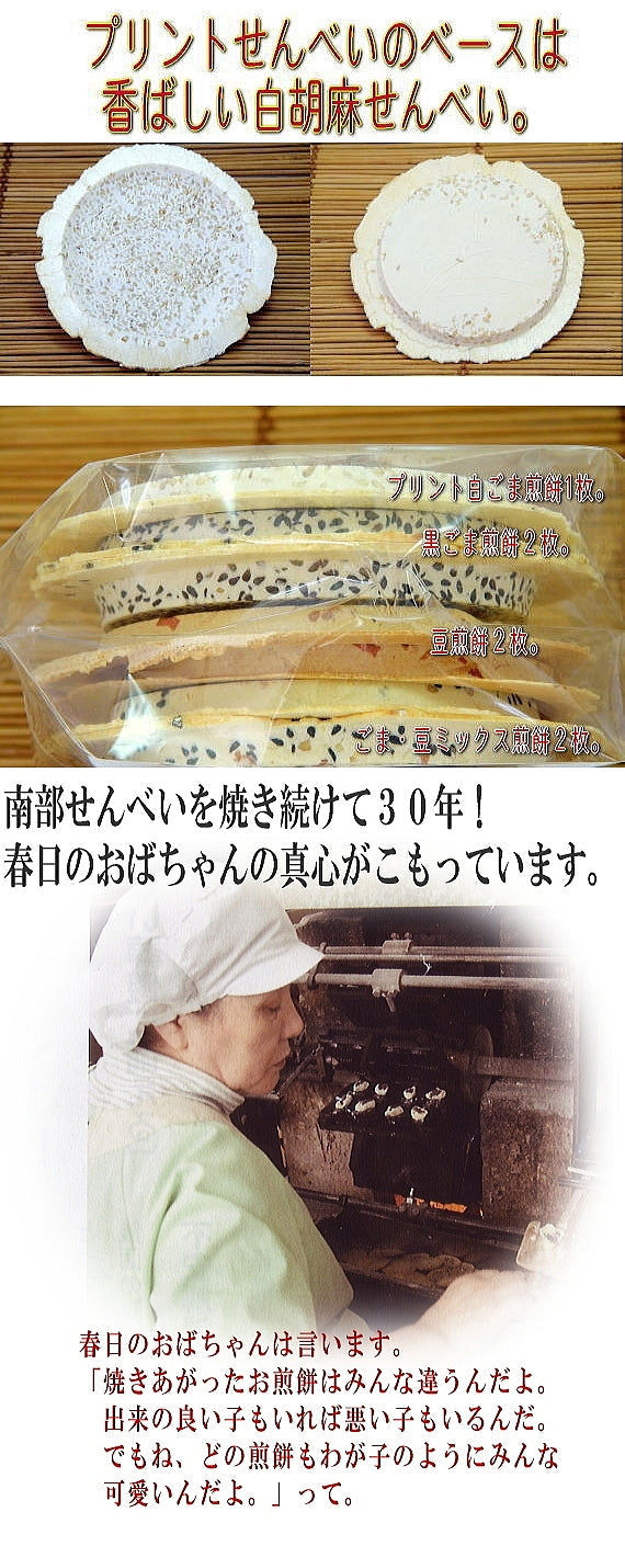 プリント南部せんべい白胡麻1枚 胡麻煎餅2枚 豆煎餅2枚 ミックス2枚
