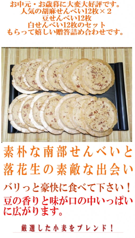 南部せんべい48枚(胡麻せんべい12枚×2、豆せんべい12枚、白せんべい12枚)