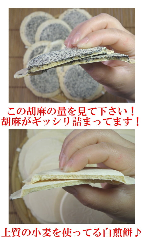 胡麻:小麦粉、胡麻(黒胡麻)、食塩、重曹豆煎餅:小麦粉、落花生、三温糖、水飴、食塩、重曹白煎餅:小麦粉、食塩、重曹当店の工場では、落花生、胡麻を含む製品を製造しています。