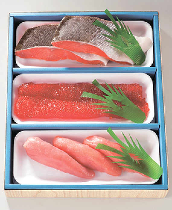 甘口紅鮭2切、甘口すじこ約200g、甘口たらこ約250g