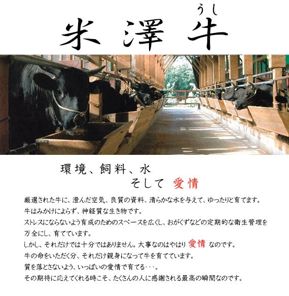 その寒暖差厳しい土地で良質の飼料と清らかな水、そしてたっぷりの愛情をかけ育て上げた「米澤牛」