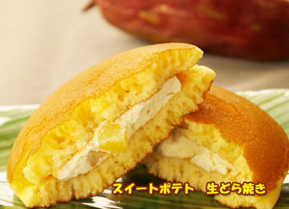 ・生どら スイートポテト砂糖(国内製造)、小麦粉、卵、さつま芋、植物性油脂、生クリーム、ブドウ糖、還元澱粉糖化物、増粘多糖類、洋酒/膨張剤、乳化剤、香料、ph調整剤、(原材料の一部に大豆を含む)栄養成分表示(1個当り) 推定値エネルギー 238Kcal タンパク質 3.0g 脂質 8.3g炭水化物 36.1g 食塩相当量 0.2g