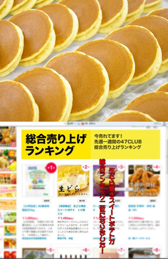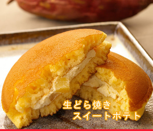・生どら スイートポテト砂糖(国内製造)、小麦粉、卵、さつま芋、植物性油脂、生クリーム、ブドウ糖、還元澱粉糖化物、増粘多糖類、洋酒/膨張剤、乳化剤、香料、ph調整剤、(原材料の一部に大豆を含む)栄養成分表示(1個当り) 推定値エネルギー 238Kcal タンパク質 3.0g 脂質 8.3g炭水化物 36.1g 食塩相当量 0.2g