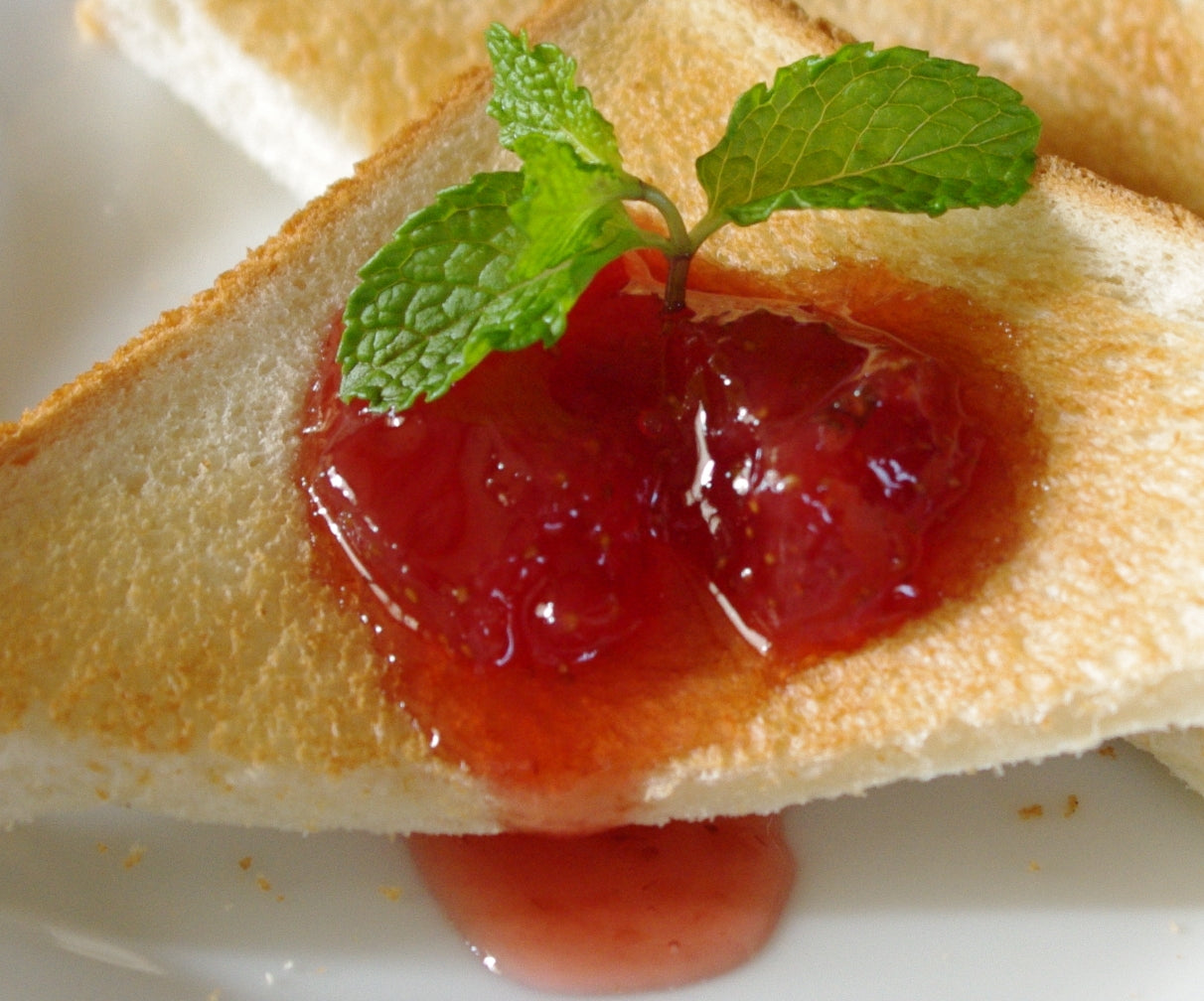 イチゴの原形を残したプレザーブスタイルのジャムです。普通のイチゴジャムのようにドロッとした感じではなく、果汁に強めのとろみをつけたような状態に仕上げています。イチゴも形を残していますので、果肉をつぶしながらパンに塗っていただいたり、紅茶にいれてお飲みいただけると、とちあいかの芳醇な香りと味わいをご堪能いただけるかと思います。