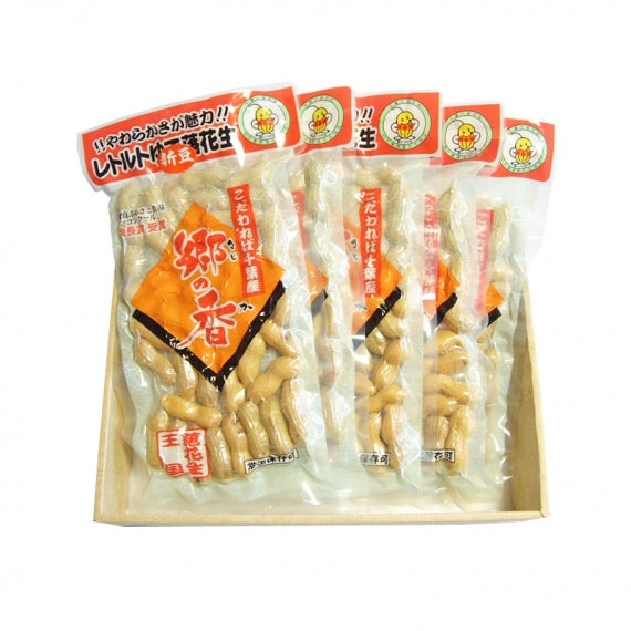 栄養価の高い落花生の栄養成分(さや入り) エネルギー 562.0kcal ナトリウム 2mg 水分 6.0g カリウム 740mg たんぱく質 25.4g カルシウム 50mg 脂質 47.5g マグネシウム 170mg 炭水化物 18.8g リン 380mg ビタミンD 0μg 鉄 1.6mg ビタミンE 10.9mg 亜鉛 2.3mg ビタミンK 0μg 銅 0.59mg ビタミンB1 0.85mg マンガン 1.56mg ビタミンB2 ナイアシン 17.0mg ビタミンB6 0.46mg パントテン酸 2.56mg ビタミンB12 0.0μg 葉酸 76μg ※100g当たりの栄養 五訂日本食品標準成分表 (平成12年:科学技術庁資源調査会ピーナッツの脂がコレステロールを減らす ピーナッツの脂質は、オレイン酸 リノール酸が多く、コレステロールを減らす働きがあります。活性酵素の働きでも酸化されにくく悪玉コレステロールを減らし血圧を下げる働きがあります。 生活習慣病(ガン・動脈硬化・糖尿病等)を予防 ピーナッツは抗酸化作用を持つビタミンEや、身体によい不飽和脂肪酸を豊富に含むと共に、腸内の善玉菌であるビフィズス菌を増やすオリゴ糖や、整腸作用を持つ食物繊維を豊富に含むなど、生活習慣病を予防する成分を豊富に含み、まさに現代人の健康問題を解決する機能性食品といえます。 貧血予防と血管年齢の若がえりに ゆで落花生には葉酸が多く含まれ、貧血・記憶力アップに効果があります。食物繊維も豊富ですので、便秘にも良い食品です。お年寄り・貧血気味の方・妊娠中の方にお薦めです。葉酸とは?水溶性のビタミンB群の一種で、血液と関係が深く他のビタミンB群、特にビタミンB12と一緒に働きます。赤血球の合成やアミノ酸(グリシン、セリン、メチオニン)の合成・たんぱく質の生成促進作用があります。 記憶力アップ・痴呆症の予防に効果あり リン脂質に含まれる「レシチン」が脳の神経細胞の働きを高めます。そもそもレシチンは脳の機能を高めてくれる神経伝達物質、アセチルアコリンの原料となる物質。レシチンを摂取することによって、神経伝達物質アセチルアコリンを作り出し、脳の活動を活発にし、記憶力の向上・脳の老化防止を防ぎます。 お酒のおつまみに最適・ピーナッツ 肝臓でアルコールの代謝を助けてくれるナイアシンが豊富。ナイアシンはビタミンB群の一種。肝臓内で糖分、脂肪、アルコールなどの代謝を助け肝臓の負担を軽くしてくれる成分です。 ポリフェノールが豊富 ピーナッツの渋皮には、抗酸化パワーを持つレスベラトロール(ポリフェノールの一種)が豊富に含まれています。血液をサラサラにして心臓病や生活習慣病の予防に効果的と言われています。そのまま食べても、又お料理にしても美味しくいただけます。 美容にも ピーナッツはタンパク質も豊富です。タンパク質をつくるアミノ酸に豊富に含まれるアルギンは血行を促し、ビタミンEなどと共に冷え性を予防します。またビタミンEは、優れた抗酸化作用があり、美肌効果や老化防止に役立ちます