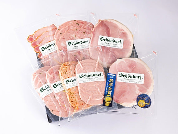 ・パプリカリヨナー 74g(スライス)豚肉、ピーマン、食塩、砂糖、香辛料/リン酸塩(Na、K)、pH調整剤、酸化防止剤(ビタミンC)、調味料(アミノ酸)、発色剤(亜硝酸Na)・プフェファーリヨナー 74g(スライス)豚肉、食塩、砂糖、香辛料/リン酸塩(Na、K)、pH調整剤、酸化防止剤(ビタミンC)、調味料(アミノ酸)、発色剤(亜硝酸Na)・カイザービアーシンケン 59g(スライス)豚肉、食塩、砂糖、香辛料、ピスタチオ、リン酸塩(Na)、pH調整剤、酸化防止剤(ビタミンC)、調味料(アミノ酸)、発色剤(亜硝酸Na)・シンケンヴルスト 74g(スライス)豚肉、食塩、砂糖、香辛料、リン酸塩(Na、K)、pH調整剤、酸化防止剤(ビタミンC)、調味料(アミノ酸)、発色剤(亜硝酸Na)・グロースリヨナー 80g(スライス)畜肉(豚肉・牛肉)、マッシュルーム、食塩、香辛料、糖類(ぶどう糖、砂糖)/リン酸塩(Na)、pH調整剤、酸化防止剤(ビタミンC)、調味料(アミノ酸)、発色剤(亜硝酸Na)・ヴァイスシンケン 180g(スライス)×2豚もも肉、食塩、砂糖、香辛料/リン酸塩(Na)、酸化防止剤(ビタミンC)、調味料(アミノ酸)、発色剤(亜硝酸Na)・カッセラーシュナイデン 74g(スライス)豚ロース肉、食塩、糖類(砂糖、ぶどう糖)、香辛料/リン酸塩(Na)、酸化防止剤(ビタミンC)、調味料(アミノ酸)、発色剤(亜硝酸Na)