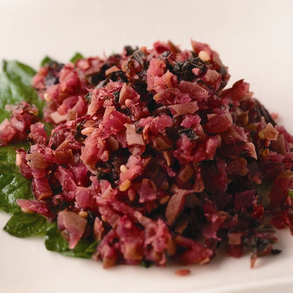 納豆に入れてうまい!おむすびにぴったり!!カリカリ梅と、しその葉を刻んだユニークな漬け物です。