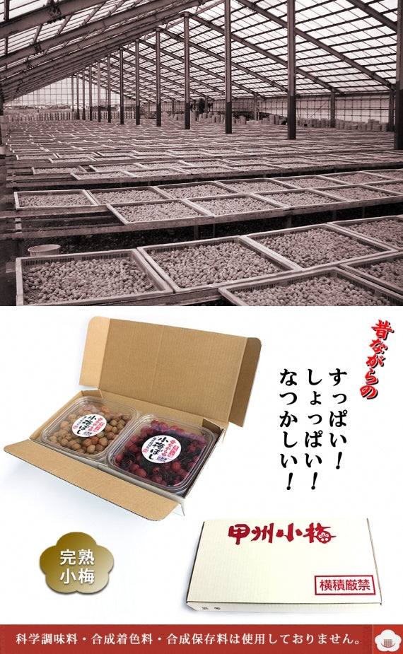 山梨特産の甲州小梅は、種が小さく果肉が多いのが特徴です。昔ながらの梅本来のうま味をご堪能いただけます。
