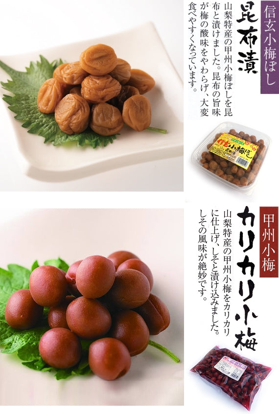 ・信玄小梅ぼし 昆布漬(500g) ・カリカリ小梅(500g)