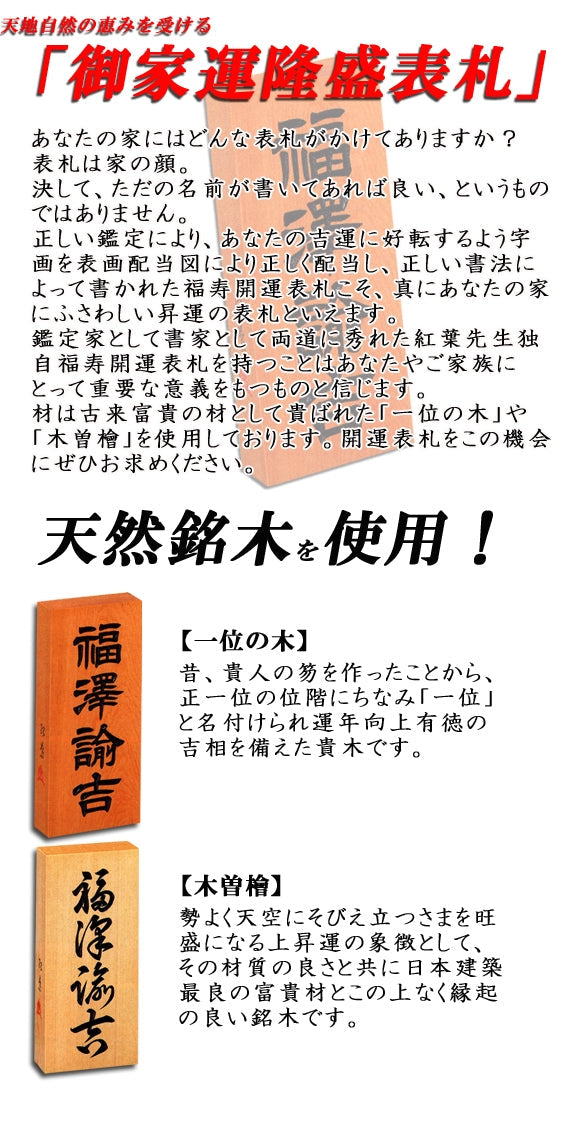 木曽檜・隷書・浮彫・六寸