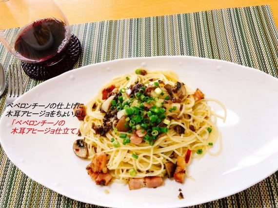 静岡県でしか栽培されていない富士山きくらげを洋風にしました。食べた時のバジルの風味が洋食に合います。
