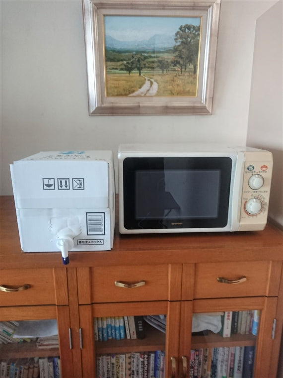 水は軽い物ではございません。2ℓであれば1c/s(6本入り)=約12㎏あります。お家へ何度も運ぶのは大変ではないですか。弊社のお水は10ℓを2箱セットにまとめ、ご自宅の玄関まで配送便がお届けします。お届きになる商品はビニールにくるまれておりますのではさみで切って出していただければご使用いただけます。