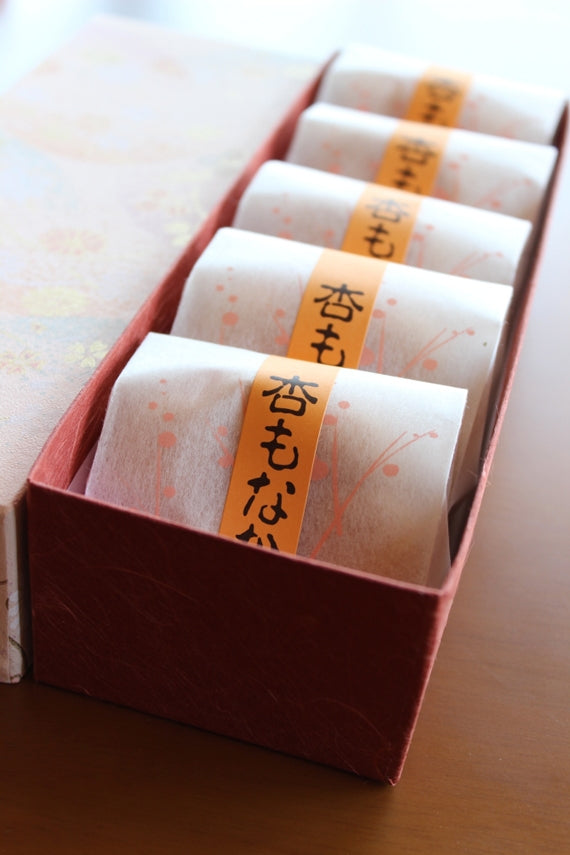 杏の果肉をペースト状に練り上げ、パリッとしたもなかの皮で包みました。