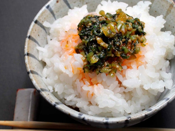 ローストガーリックも入って歯ごたえも抜群のラー油野沢菜はご飯にかけてもとってもおいしいです!ピリ辛のラー油野沢菜を是非お試し下さい。