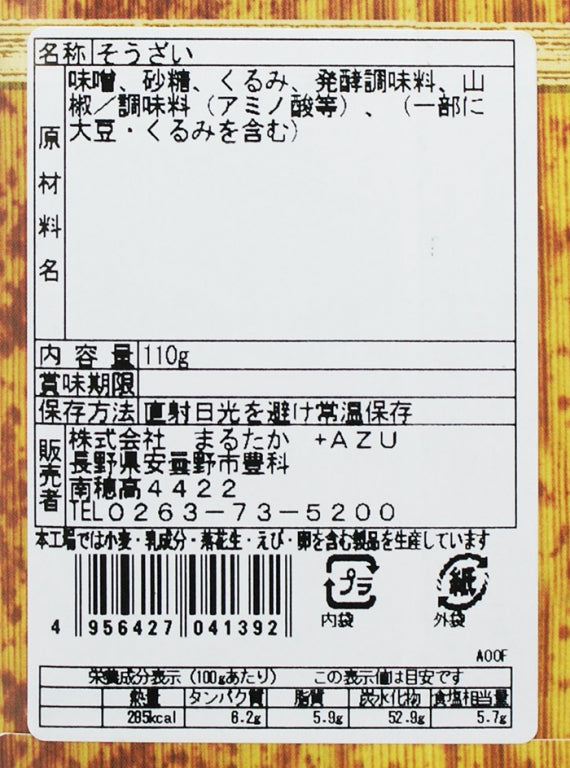 香ばしい風味山くるみ山椒味噌(竹紙)家伝味噌 信州長野のお土産山くるみを完熟醸造の信州味噌で仕立てました。 スパイシーな山椒の香りと山くるみの香ばしさの上品なおかず味噌です。名称/そうざい内容量/110g賞味期限/製造日より約6ヶ月保存方法/直射日光を避け常温保存原材料/ラベル添付本製品工場では、小麦、乳成分、落花生、えび、卵を含む製品を生産しています。※販売者:株式会社まるたか 長野県安曇野市豊科南穂高4422(信州長野のお土産 お取り寄せ ご当地 グルメ おみやげ お惣菜 お総菜 おそうざい 長野県 長野土産 長野お土産 通販)