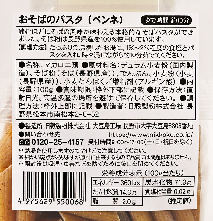原材料/デュラム小麦粉(国内製造)、そば粉(そば(長野県産))、でんぷん、小麦粉(小麦(長野県産))、小麦たんぱく/増粘剤(アルギン酸)