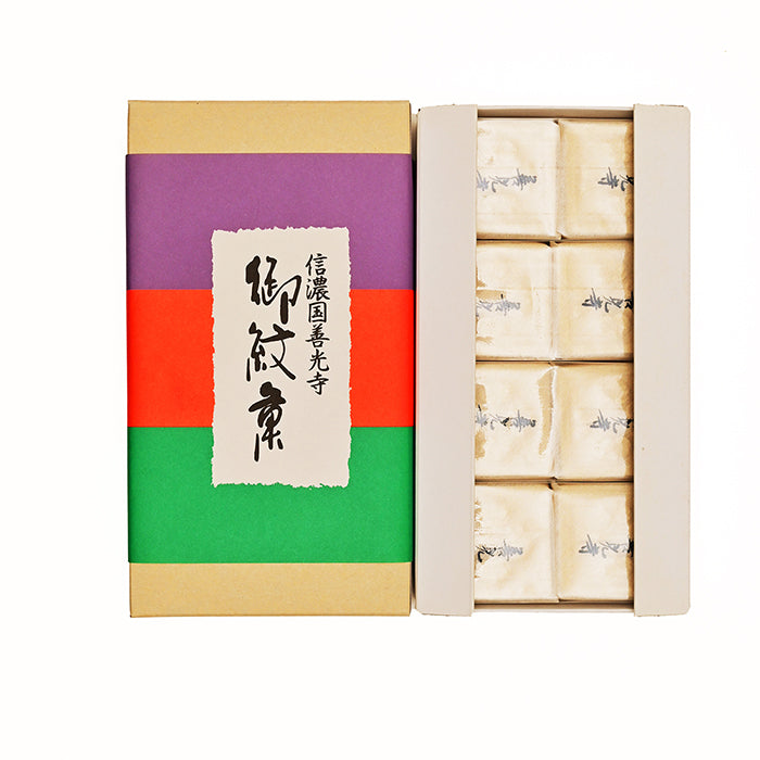 信州長野のお土産峰福堂本店善光寺御紋菓16個入内容量16個賞味期限製造日より約6ヶ月保存方法直射日光、高温多湿を避けて保存原材料赤えんどう粉、和三盆、粉糖、コーンスターチ、糖蜜