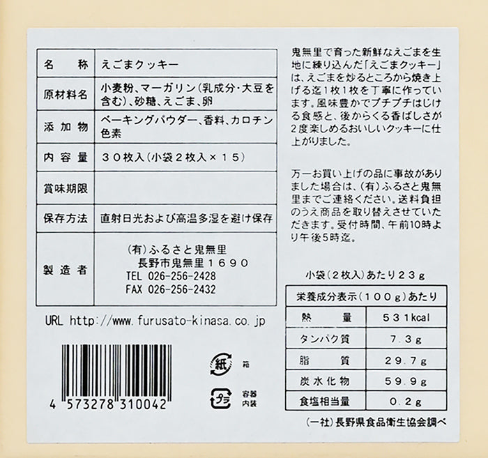 信州長野のお土産 信州鬼無里えごまクッキー 30枚入