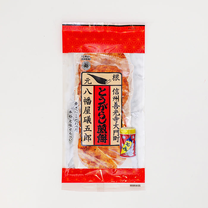 辛口米菓でおなじみの「唐辛子の種」のおいしさをそのままに。辛さにこだわって信州長野善光寺大門町、八幡屋磯五郎の本格七味を使った堅焼き煎餅