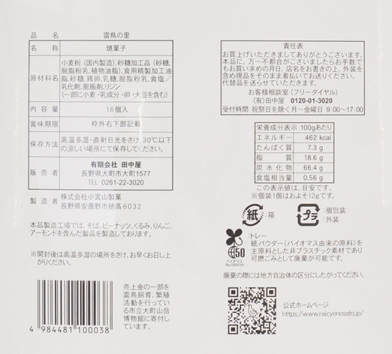 北アルプスを象徴する鳥"雷鳥"の名をいただいた欧風焼き菓子「雷鳥の里」。欧風せんべいにクリームをサンド。 サクッとした食感と軽やかなおいしさが人気のお菓子です。 お茶菓子として、コーヒー、緑茶なんでも合います。
