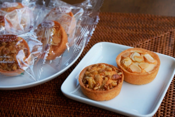 モンドセレクション金賞受賞の代表的なお菓子。たっぷりくるみ入りとスライスアーモンド入りの2種類があり、ひとつひとつ個包装されています。 バターもふんだんに使ったサクサク美味しいタルトと評判です。